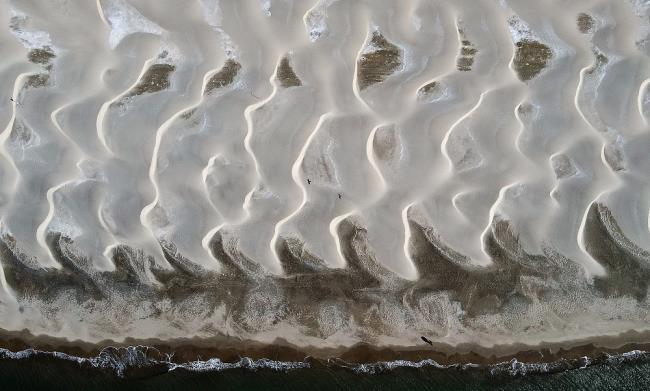 절기상 입춘인 지난 4일 오전, 부산 사하구 다대포해수욕장 백사장이 겨우내 불었던 바람으로 인해 사막 같은 모양으로 형성돼 있다.