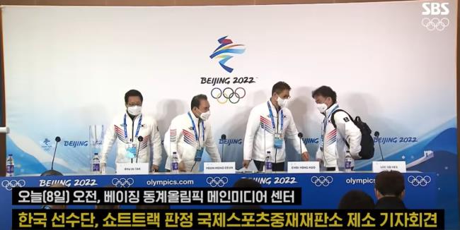 윤홍근 올림픽 선수단장은 8일 오전 중국 베이징 메인미디어센터(MMC)에서 기자회견을 개최, “쇼트트랙 젊은 선수들의 청춘을 지켜내지 못한 부분에 대해 대한민국 선수단을 대표해 선수단장으로서 사죄와 용서를 구한다. 정말 죄송하다”며 “국제빙상경기연맹(ISU)과 국제올림픽위원회(IOC)에 ‘항의 서한’을 발송해 강력하게 의의를 제기했다. 이기흥 대한체육회 회장과 유승민 IOC 위원을 통해 직접 바흐 위원장과 면담을 요청해 놓은 상황”이라고 밝혔다.