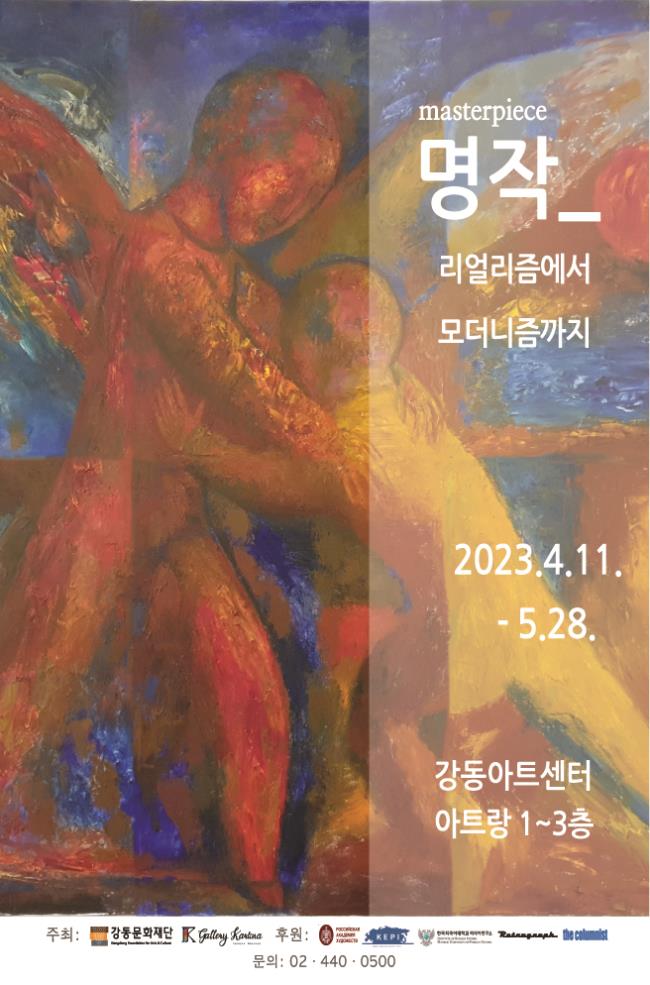 강동문화재단은 이달 11일부터 다음달 28일까지 갤러리 ‘까르찌나’와 공동 주최로 강동아트센터 복합문화공간 아트랑에서 ‘명작_리얼리즘에서 모더니즘까지’ 현대미술 전시를 개최한다. 국내에서 쉽게 만날 수 없는 러시아 현대미술 작품은 리얼리즘 130여 점과 모더니즘 120여 점이며, 참여작가는 모두 12명이다. 러시아 무드 풍경화의 대가 미하일 쿠가츠를 비롯해 풍경화가 7인과 색채 추상(러시아 아방가르드)의 대가 올가 불가코바, 모더니즘 화가 5인의 작품 250여 점이 전시에 출품되며 대표작으로 미하일 쿠가츠의 ‘귀환’, ‘배웅’, ‘먼길’과 올가 불가코바의 ‘천사와 싸우는 야곱’, 세르게이 볼코프의 ‘두도시’ 등이 있다.