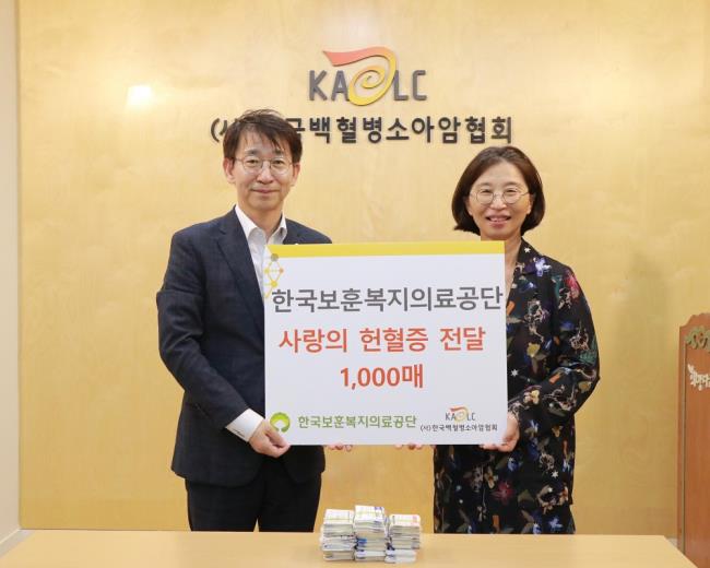 김주천 한국보훈복지의료공단 기획조정실장은 “임직원들이 모은 헌혈증 1000매가 소아암 어린이들의 치료에 실질적 도움이 됐으면 좋겠다”며 “한국보훈복지의료공단은 앞으로도 다양한 사회공헌 활동과 기부 활동을 적극적으로 추진해 나가겠다”고 말했다. 글=김수아 아카이브뉴스 기자