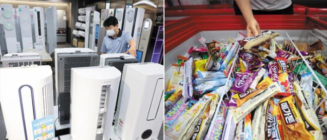 아이스크림과 에어컨을 찾는 사람이 늘고 있다. 며칠째 전국 대부분 지역에 30도를 웃도는 폭염이 계속되는 가운데 집에 머무는 시간도 길어지면서 나타나는 현상이다.