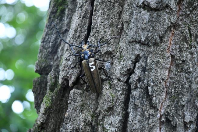 ▲ 소형 송신기를 부착한 장수하늘소. 사진=국립수목원 제공