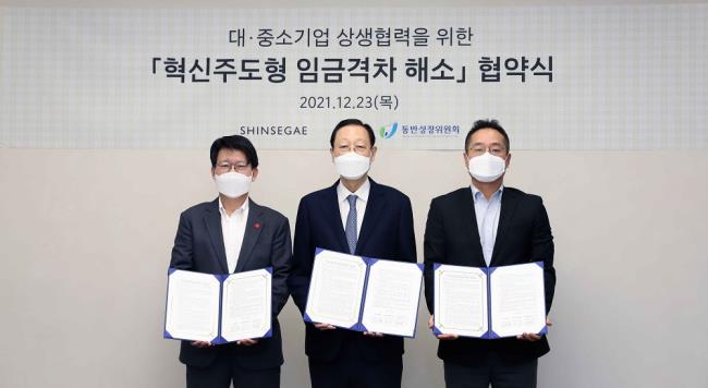 신세계백화점은 23일 동반성장위원회(이하 동반위)와 ‘혁신주도형 임금 격차 해소’ 협약(MOU)을 맺고 협력사 상생 협력 프로그램 운영 방안을 발표했다.