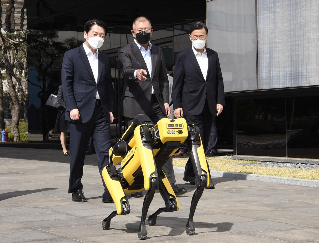 안 위원장 등은 로봇 개 스팟(Spot)의 특별한 에스코트를 받으며 행사장에 입장했다. 스팟은 현대차그룹 일원이 된 보스턴 다이내믹스의 4족 보행 로봇이다. 지난해부터 자동차 생산 현장에 투입돼 안전관리 업무를 맡고 있으며, 미국의 경우 화재 진압 현장에서도 활약하고 있다.