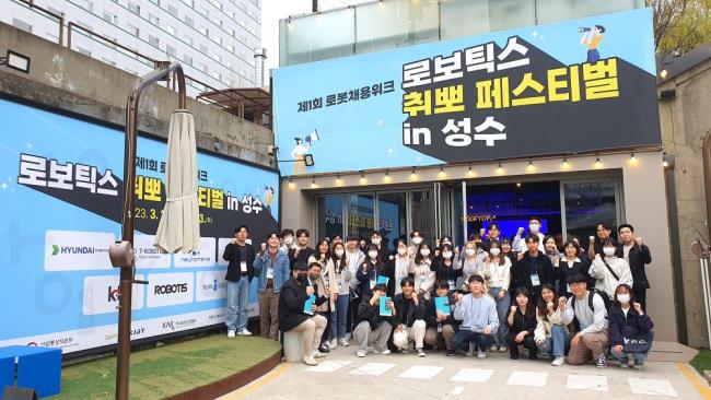 제1회 로봇채용위크 ‘2023 로보틱스 취뽀페스티벌 in 성수’가 사흘간의 일정을 마치고 성황리에 막을 내렸다. 한국로봇산업협회가 주관한 이번 행사에는 지난 21일 서울 성수동 소재 로봇기업 뉴로메카(NEUROMEKA)의 현장 투어에 이어 22일과 23일 양일간 로봇기업 티로보틱스에서 운영하는 로봇카페 ‘봇봇봇’에서 로봇기업 리크루팅 데이가 진행됐다. 해당 행사에는 로봇 분야의 최고 인재를 유치하기 위해 우리나라를 대표하는 로봇 기업 7개사가 참여했다. 이들은 공동 주관 기관인 저탄소·에너지기술컨소시엄 공학교육혁신센터 소속 고려대, 이화여대, 서울시립대 등 학부생과 한국로봇산업협회 석박사인력양성사업에 참여 중인 성균관대, 숭실대 등 로봇 관련 석·박사생들을 대상으로 자사 기업을 소개했다.