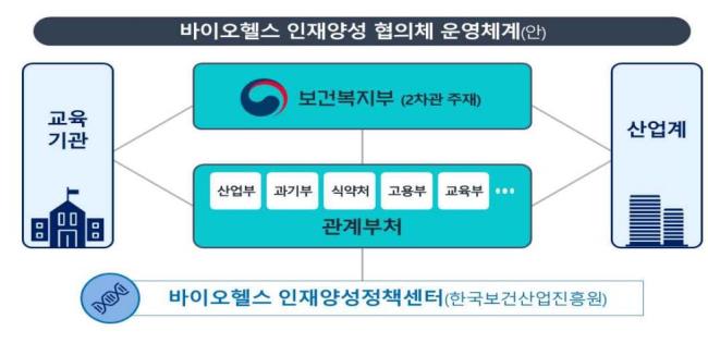 우선, 산업현장에 기반한 학교교육을 제공한다. 바이오헬스 마이스터대 도입(2023년, 2개교·6개 학과) 및 특성화고·마이스터고와 공공·민간 실습시설 연계 등을 통해 실습 교육을 확대한다. 또한, 기업 맞춤형 교육과정을 제공하는 바이오헬스 중소기업 계약학과와 산업단지 내 바이오헬스 학과를 조성하는 산학 융합지구 구축을 통해 산학연계도 강화한다.