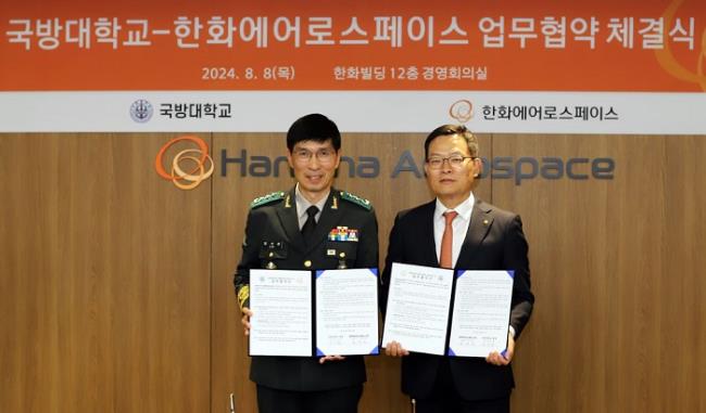 한화에어로스페이스가 국방대학교와 인재 육성 및 방산·우주·항공 기술 연구를 위해 협력하기로 했다